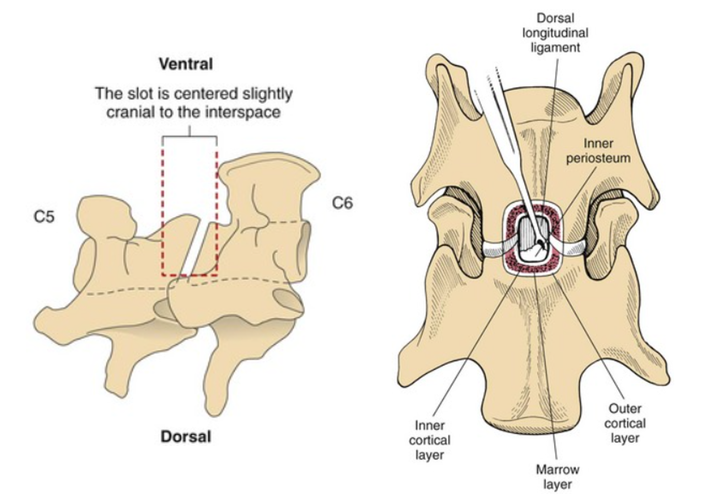강아지 경추디스크 수술 방법 – 배쪽 창냄술(Ventral Slot)
