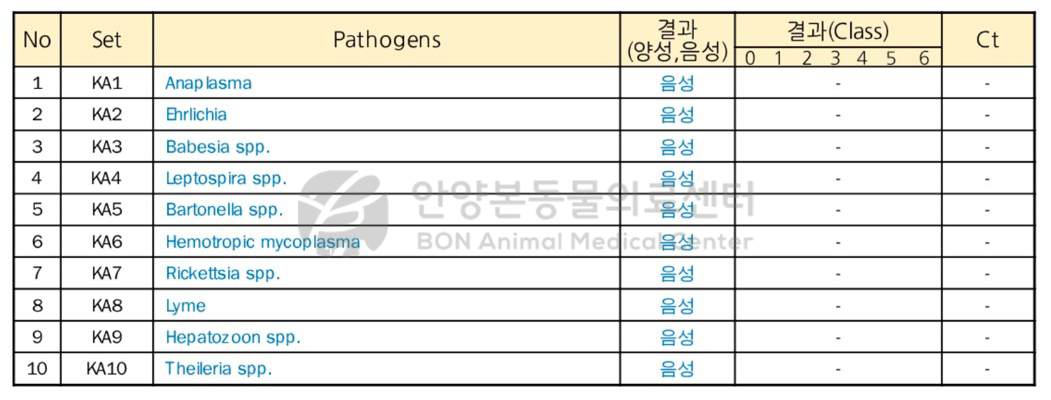 보나 상태의 원인을 확인하기 위해 실시한 혈액 검사 상 심한 빈혈, 고빌리루빈 혈증 및 염증 수치 상승이 확인되었고 육안상 혈액 응집이 확인되며, 혈액 도말에서 구상 적혈구 증가가 확인되었다.