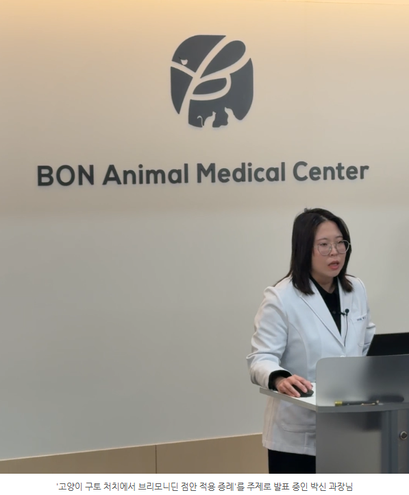 가장 높은 관심을 모은 발표는 박신 내과 과장님의 ‘고양이 구토 처치에서 브리모니딘 점안 적용 증례’였습니다.