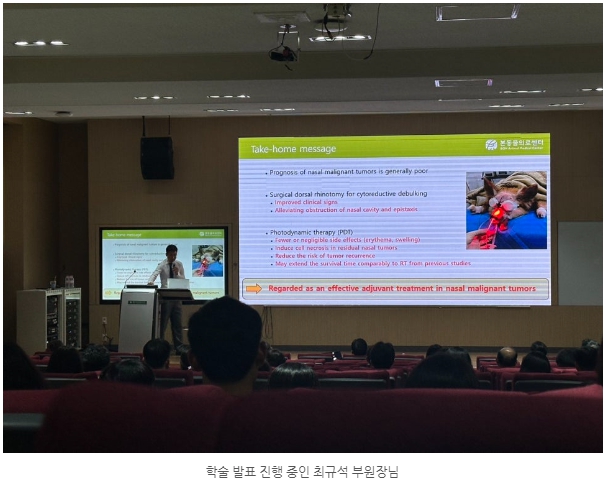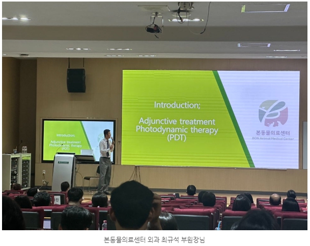 'Successful outcome of surgical resection and photodynamic therapy in dogs with nasal malignant tumors(강아지 악성 비강종양 환자에게 수술적 치료 이후에 광역동 치료(Photodynamic therapy, PDT)를 추가 적용한 6마리 증례)'를 주제로 발표하였습니다.