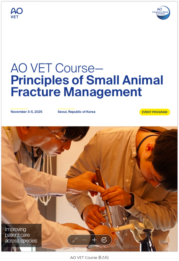 AO VET Course - Principles of Small Animal Fracture Management(소동물 골절 관리의 핵심 원리)를 성공적으로 수료했습니다.