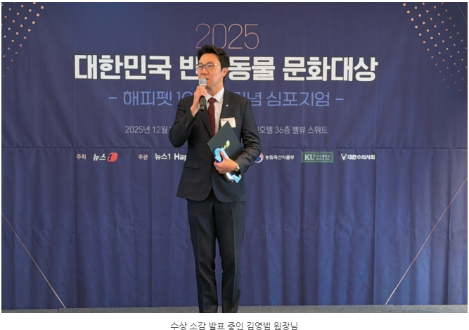 앞으로도 반려동물을 진심으로 위하는 마음을 잃지 않고 수의사로서의 신뢰를 지키겠습니다”는 수상 소감을 발표했습니다.