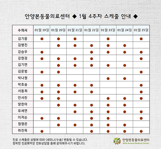 N [안양점] 안양본동물의료센터 3월 3주 - 4주차 진료 스케줄