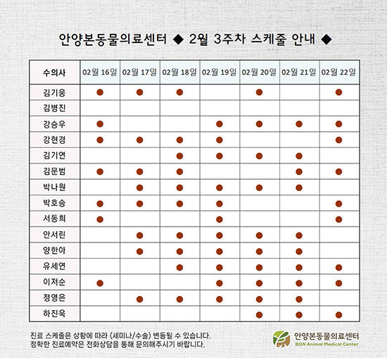 N [안양점] 안양본동물의료센터 3월 3주 - 4주차 진료 스케줄