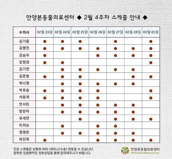 [안양점] 안양본동물의료센터 3월 2주 - 3주차 진료 스케줄